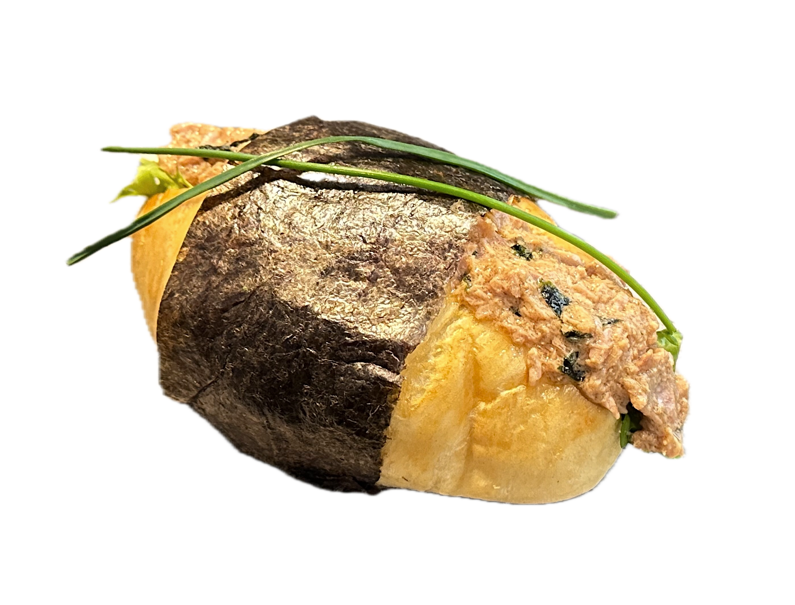 Nuestra masa de pan esponjosa relleno de atún, mayonesa japonesa, salsa de soja, alga y sésamo